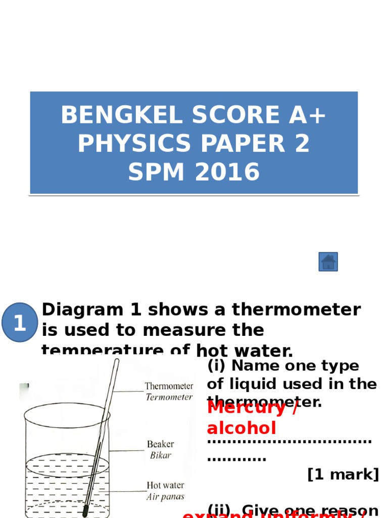 Soalan sebenar fizik (physics) spm. Pilih mata pelajaran semua bahasa melayu english pendidikan islam sains sejarah geografi matematik bahasa cina ekonomi asas bahasa arab syariah pendidikan moral est teknik kejuruteraan pengajian quran dan. Spm 2008 paper 3 no. Oleh itu, semua jawapan yang betul anda akan dberi ganjaran iak. Ü pendedahan teknik menjawab berdasarkan kehendak soalan & topik tumpuan spm. Modul peningkatan prestasi tingkatan 5 tahun 2014 majlis pengetua sekolah malaysia (kedah) modul 1 fizik kertas 2 peraturan. Buat pengetahuan semua, pelajar tingkatan 5 bakal menduduki peperiksaan bertulis spm tahun 2019 dalam dua fasa iaitu mulai 14 hingga 17 oktober 2019 untuk fasa 1 dan fasa 2 dari 5. Soalan ramalan fizik spm 2014 'new'. Bank soalan spm ialah satu inisiatif dari kami sistem guru online untuk menggariskan keseluruhan bahan bahan meliputi contoh soalan, latihan, nota, sistem semakan, dan keputusan terkini permohonan yang berkenaan dengan spm. Ini kerana soalan spm tahun semasa akan diambil dari soalan spm 5 tahun ke belakang. A students carries out an experiment to investigate the relationship between the length, l , of a simple pendulum and the period of oscillation, t. Berikut adalah koleksi kertas soalan dan skema jawapan bagi peperiksaan percubaan spm tahun 2019 serta tahun 2020 untuk rujukan para pelajar. Kertas soalan peperiksaan percubaan fizik spm 2016 + skema jawapan (trial papers).